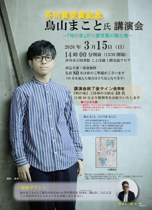 芥川賞受賞記念 鳥山まこと氏講演会~『時の家』芥川賞受賞の舞台裏~